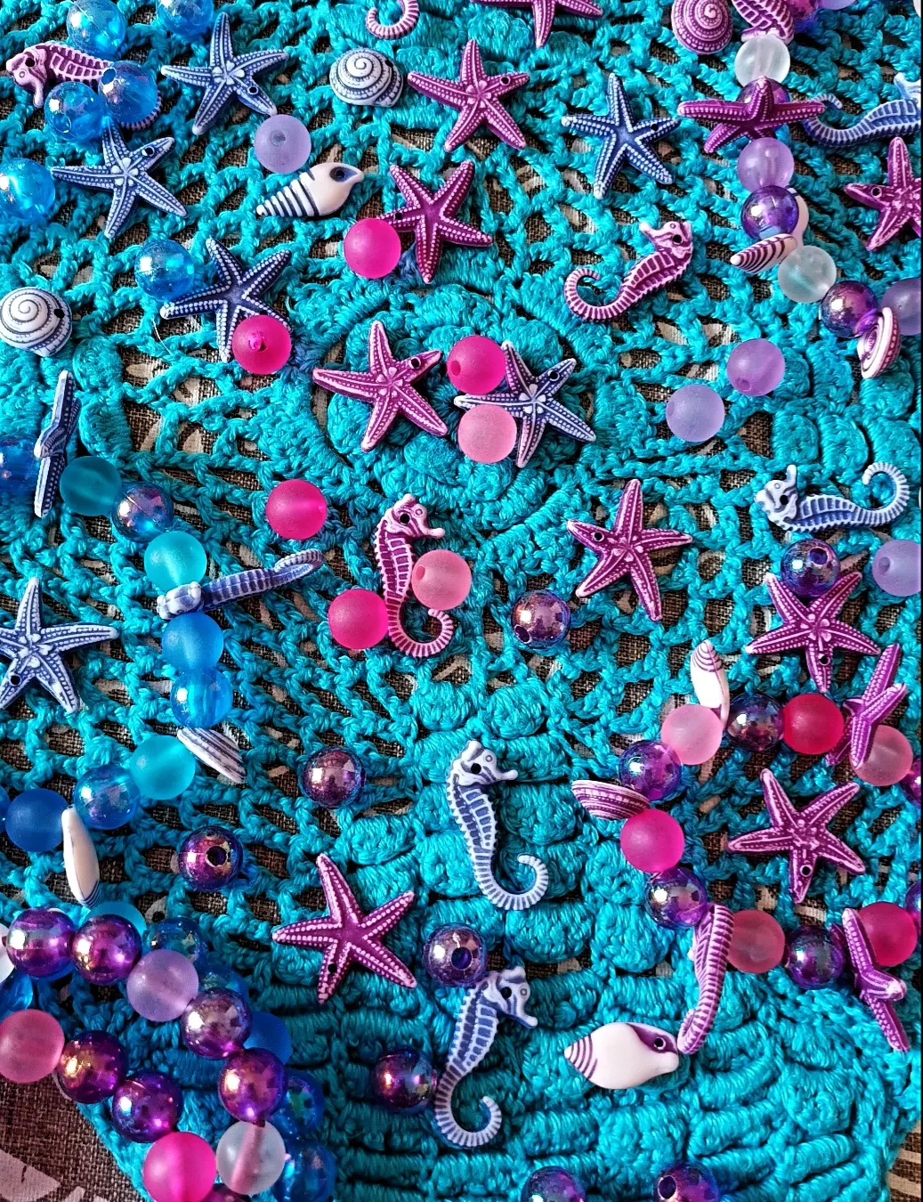 Se ci fate caso in questi giorni con l’estate che avanza e che si fa sentire, è ormai diventato sempre più un must della stagione indossare tanti bracciali dai colori sgargianti e brillanti, anche di diverso stile e materiale, meglio se abbinati al nostro abbigliamento, per poter essere ancora più trendy e alla moda. Quindi ecco a voi la mia creazione di oggi: i bracciali elastici in stile marino. Per poterli realizzare mi sono munita di filo elastico trasparente o colorato, tante pietre o perle di varie sfumature e, in questo caso, charms a forma di stella marina, cavalluccio marino e conchiglia che richiamano l’estate e il mare. Una volta infilate le pietre o perle che avete scelto e chiuso il filo elastico con un nodo, il gioco è fatto. Con questa tecnica semplice e veloce potrete creare e indossare quanti più bracciali vorrete. Allora come vi scrivo sempre: “Buon lavoro e buone creazioni!”