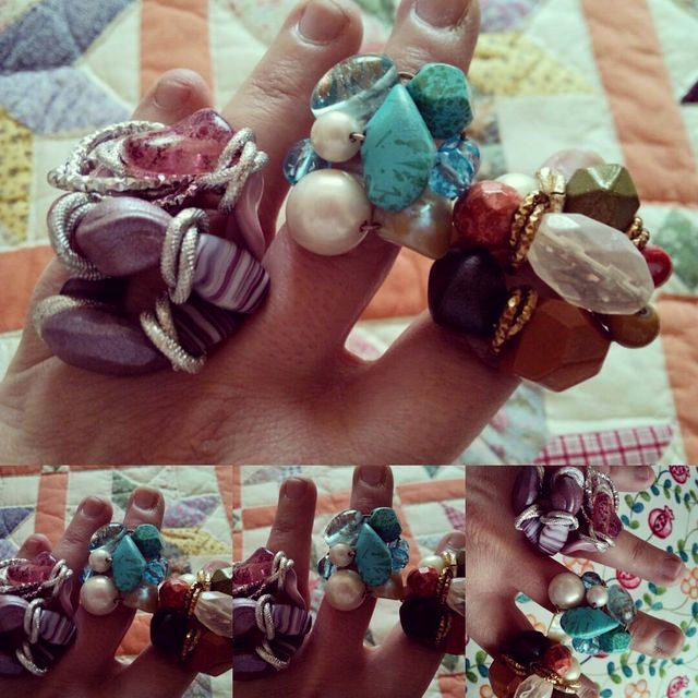 Con la stessa tecnica potete creare anelli con più pietre o perle dai vari colori o anche con una pietra unica, come potete vedere da queste foto.