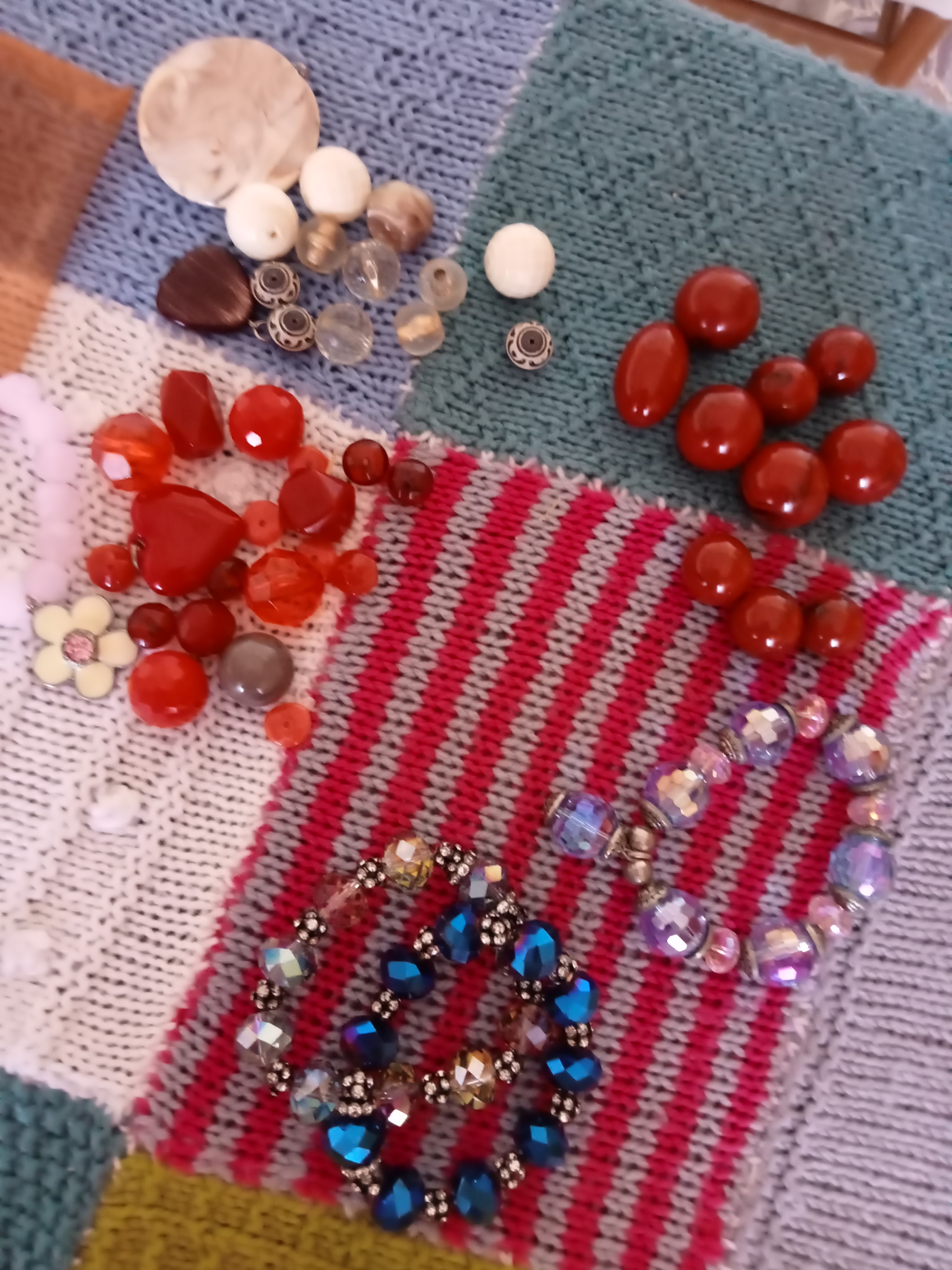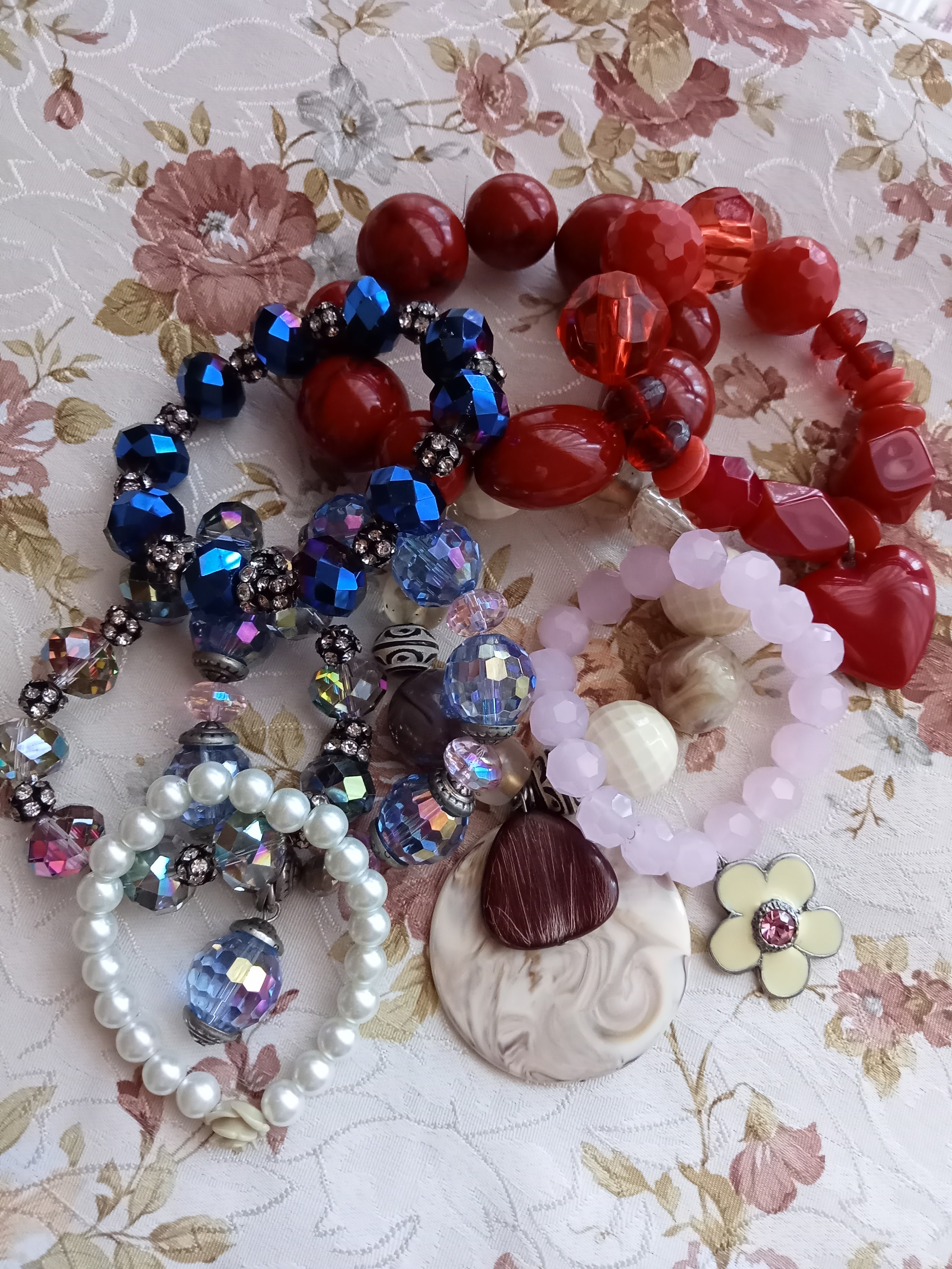 All’inizio devo confessarvi che ero un po’ dispiaciuta, ma poi ho pensato che avrei potuto benissimo ripararmeli anche da sola, senza doverli necessariamente portarli ad aggiustare. E così ho fatto. Mi sono procurata del semplice e sempre molto utile filo elastico e ho iniziato a rinfilare tutte le pietre, perle e cristalli che li componevano nello stesso ordine di quando li avevo acquistati e questo è stato il risultato: