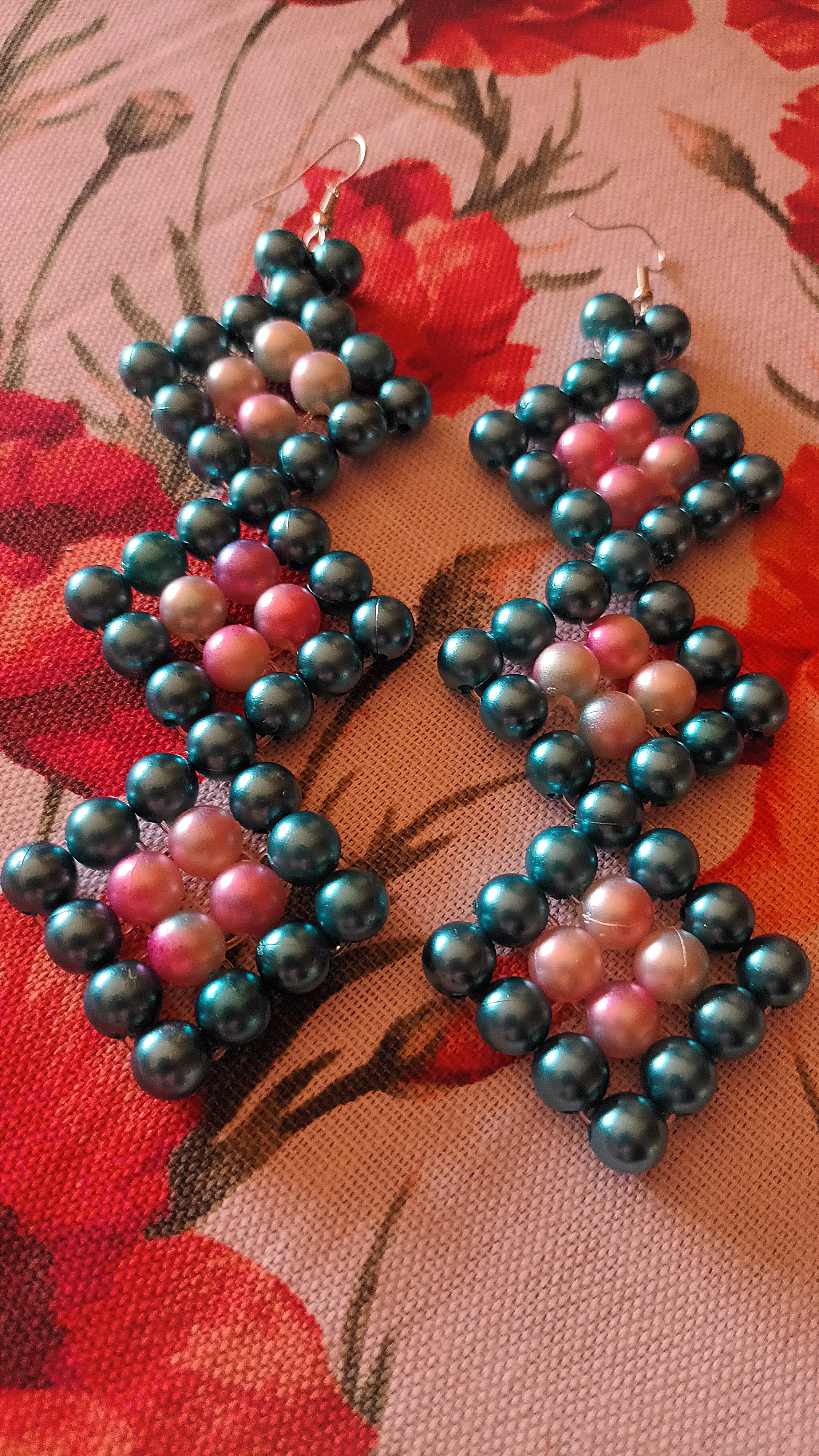 - 76 perline di colore blu petrolio( 38 per orecchino)