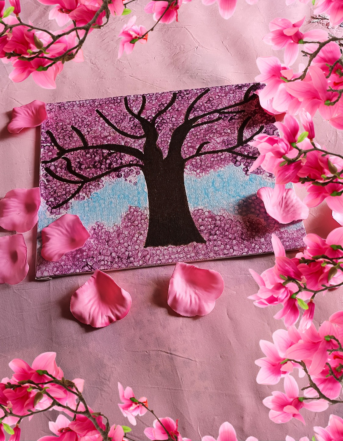 Ogni anno, con l’arrivo della primavera, la fioritura dei ciliegi ci regala sempre degli scenari meravigliosi dalla bellezza fugace ma, allo stesso tempo, sorprendente e straordinaria. Nel quadretto che vedete in foto, ho voluto immortalare proprio questo momento della fioritura attraverso una tecnica semplice e l’utilizzo di pochi materiali.