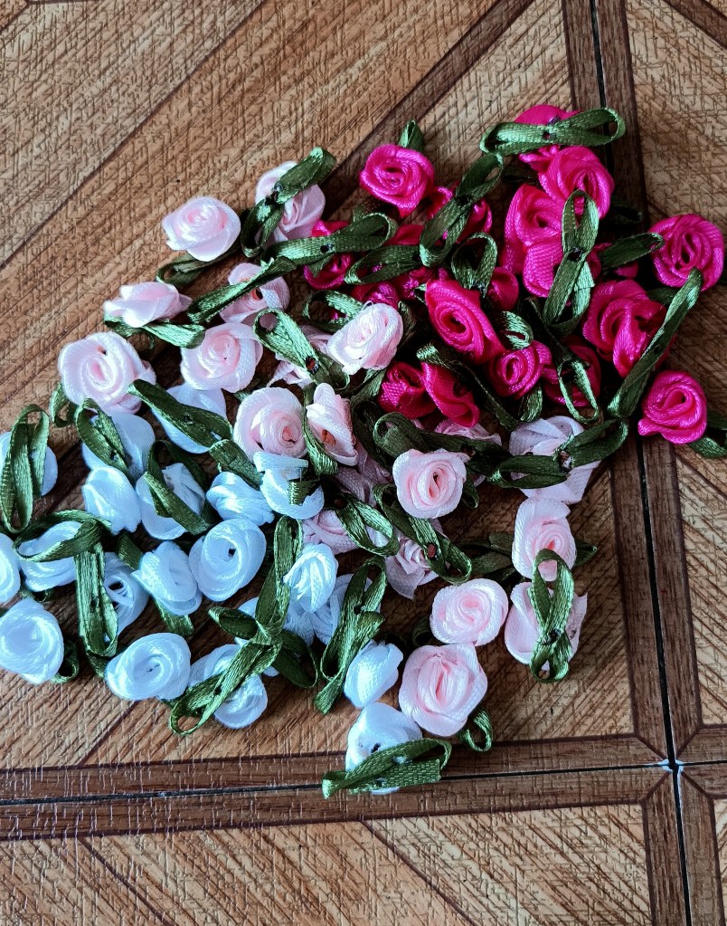- piccoli fiorellini di stoffa sulle tonalità del rosa, del bianco e del fucsia
