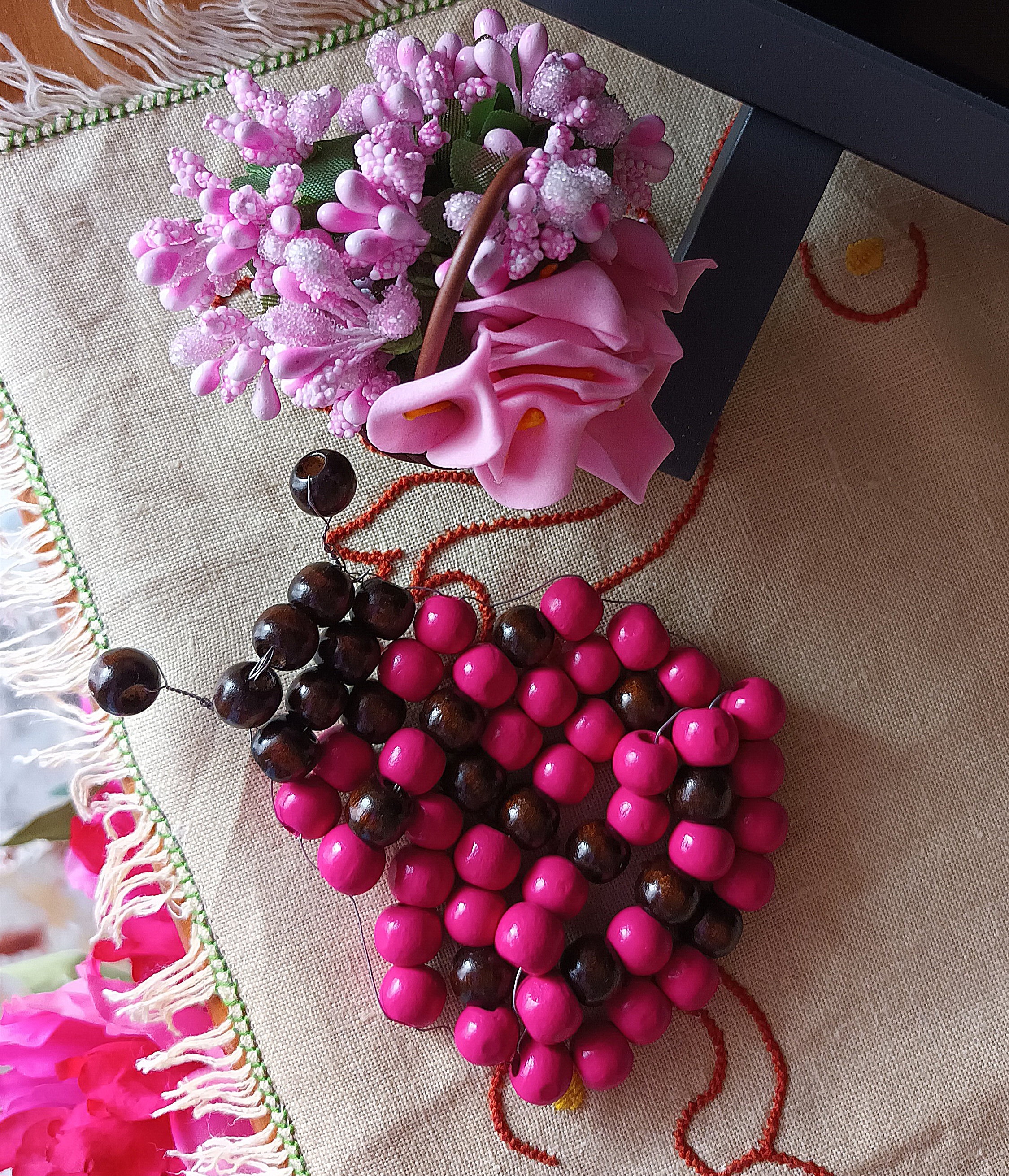 - 38 perle di legno di colore fucsia