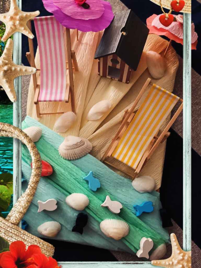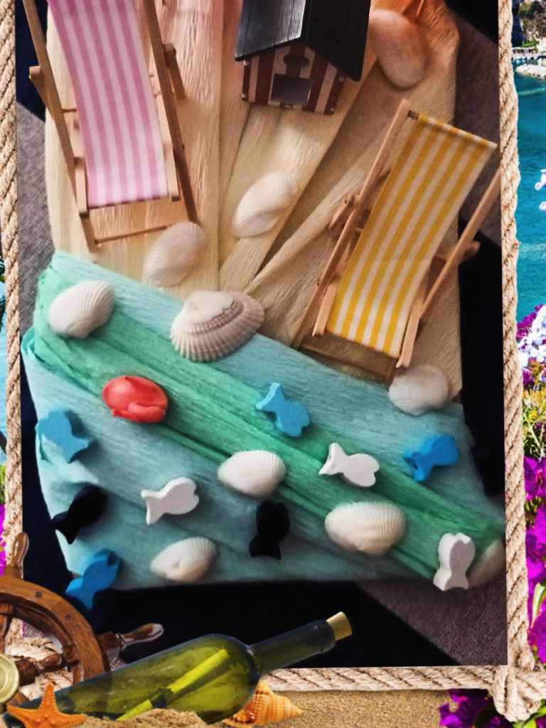 L’articolo creativo di oggi prende spunto dalle calde e afose giornate di questa prima metà del mese di giugno che stiamo vivendo e che sono tipiche di un’estate ormai inoltrata di luglio o agosto. Soffermandomi proprio su questo aspetto, ho così pensato di ricreare in piccolo un caratteristico paesaggio marino con la sua spiaggia coperta di sabbia chiara e conchiglie e l’acqua del mare ricca di pesci dalle sfumature azzurre e verdi.