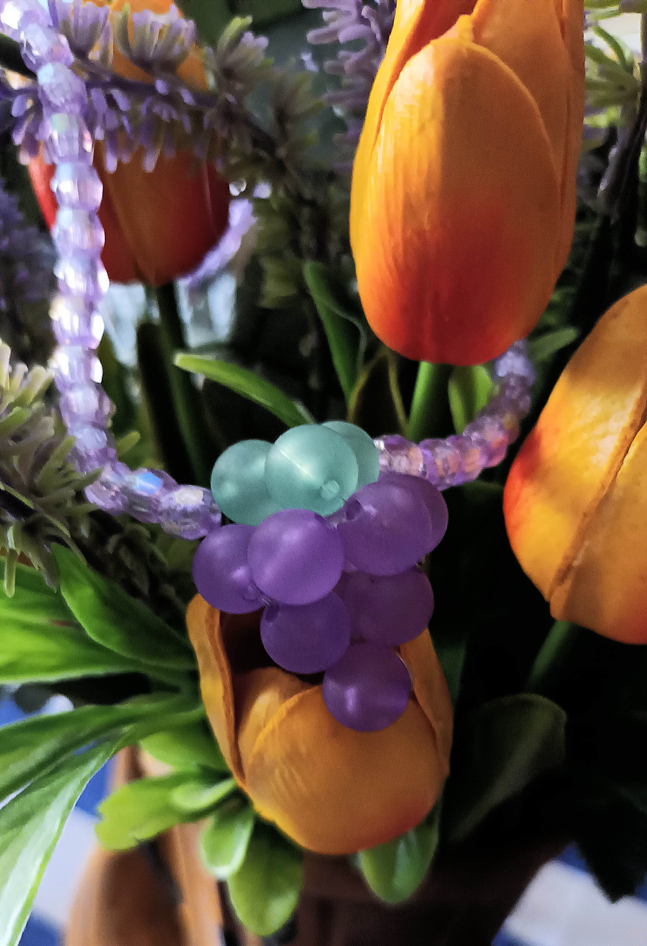 Una volta tagliate le eccedenze di filo con le forbici, il nostro grappolo d’uva è finalmente pronto!