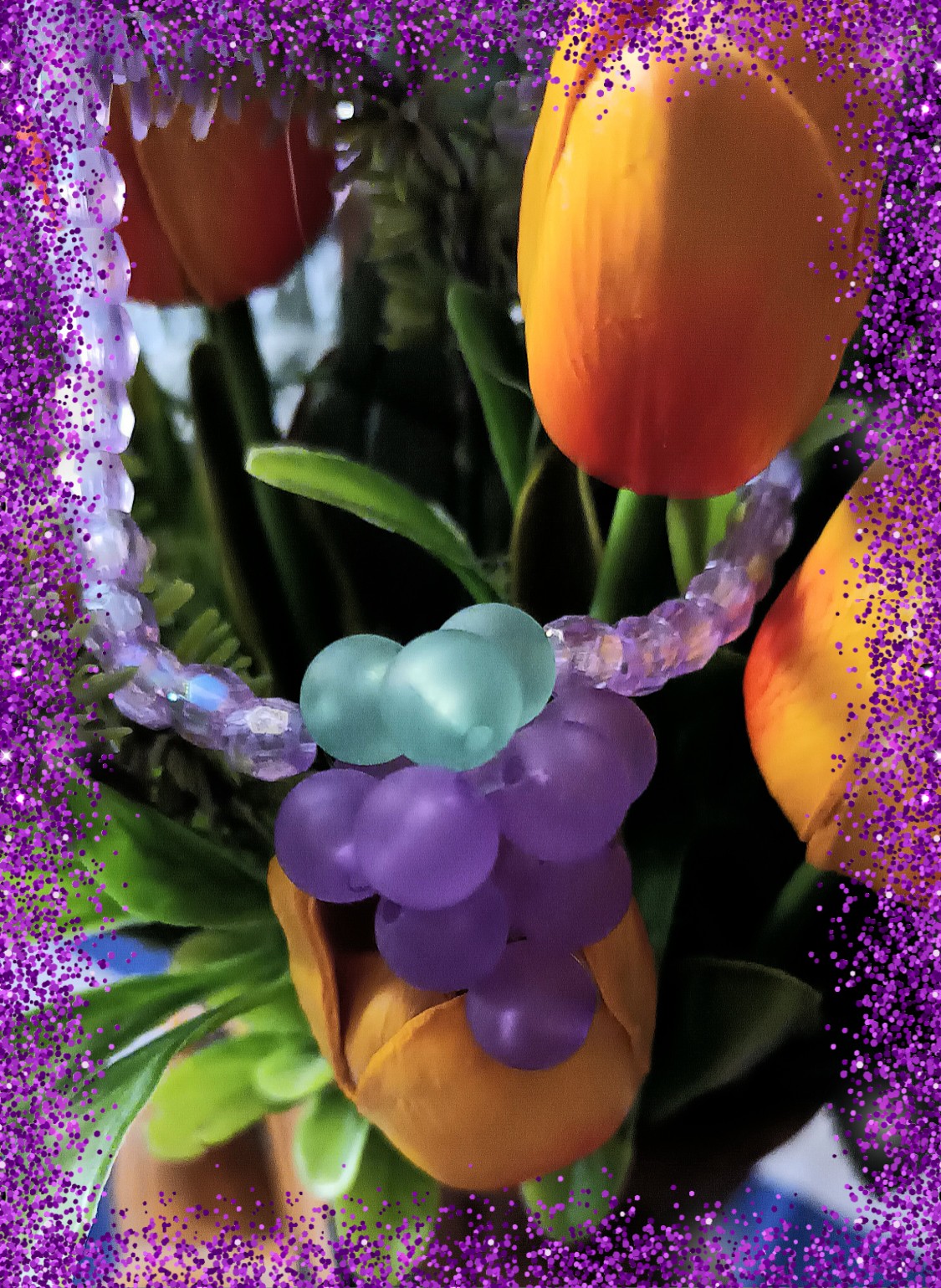 - 3 perline opache di colore verde scuro e 10 perline opache di colore viola