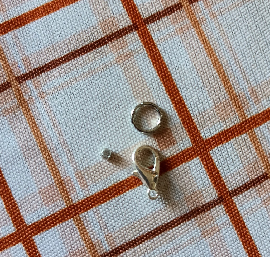 - 1 moschettone color argento, 1 anellino color argento e 1 fermaperline color argento