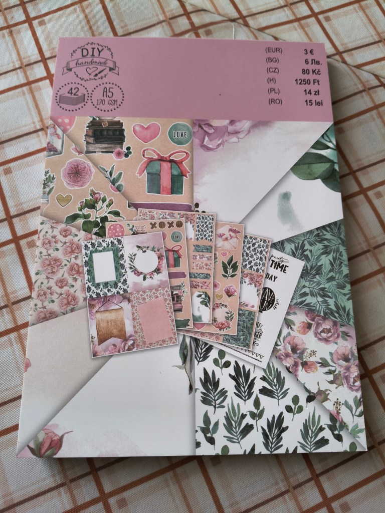 - un blocco di fogli di carta decorati per lavori di bricolage