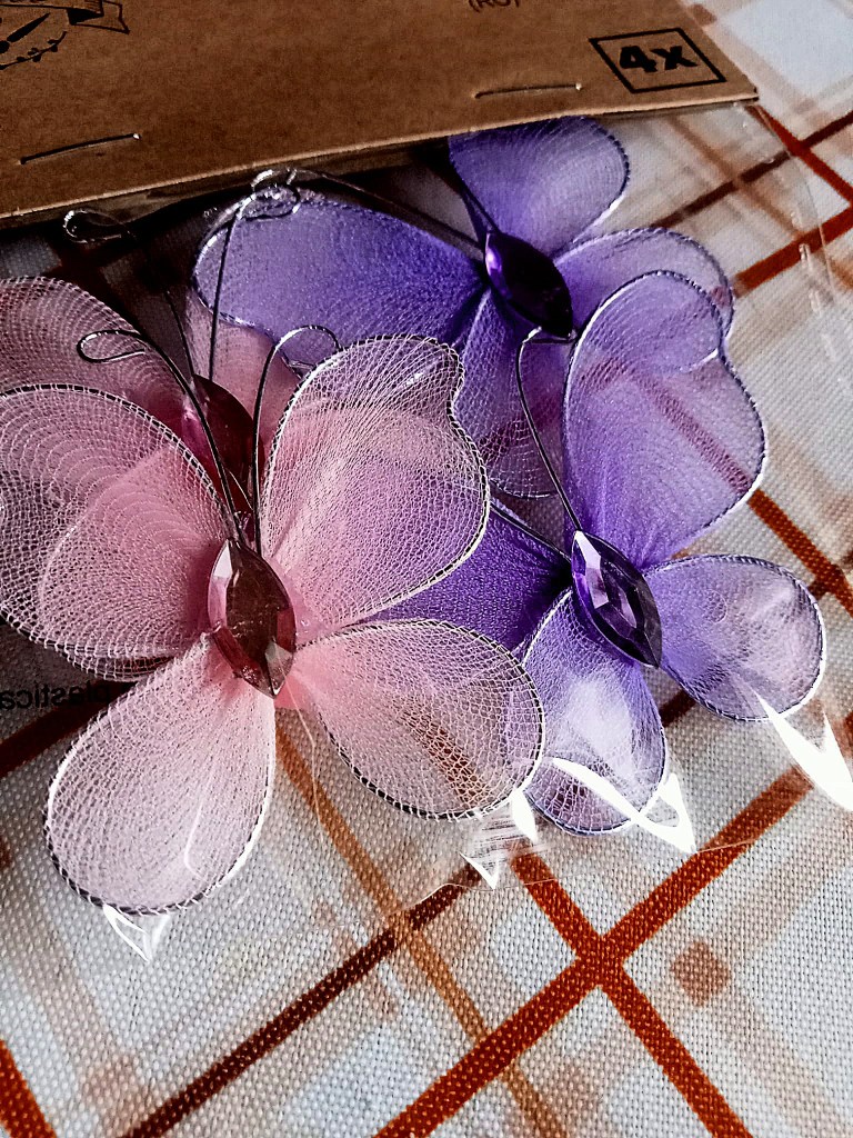 - farfalle decorative in organza semitrasparente con strass al centro