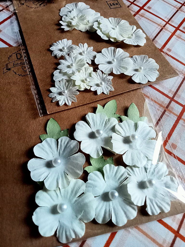 - fiorellini di carta con perlina al centro
